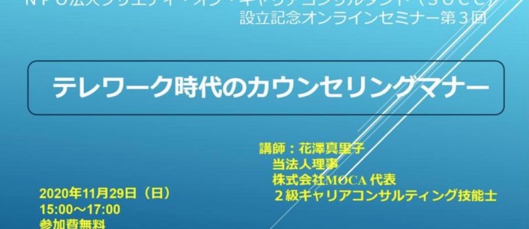 公開オンラインセミナー11/29 (日) 「テレワーク時代のカウンセリングマナー]