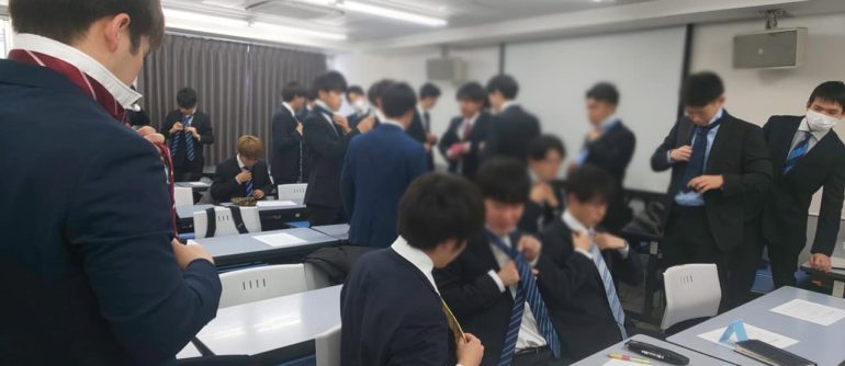 就職支援とビジネスマナー担当している専門学校での授業。 スポーツ関係に就職希望の学生なので、男子多いクラスです。 スーツの着こなし ネクタイの結び方を、オーダースーツ会社の社長に来ていただき、指導してもらいました。 あっという間に胸元がキリッと‼️ ネクタイ結びの魔術師さながら、学生の吸収力の高さにも感動。 <img...